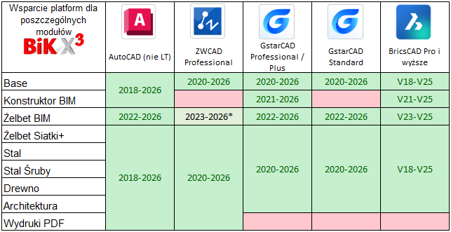 Nakładka BiK współpracuje z poniższymi aplikacjami CAD: